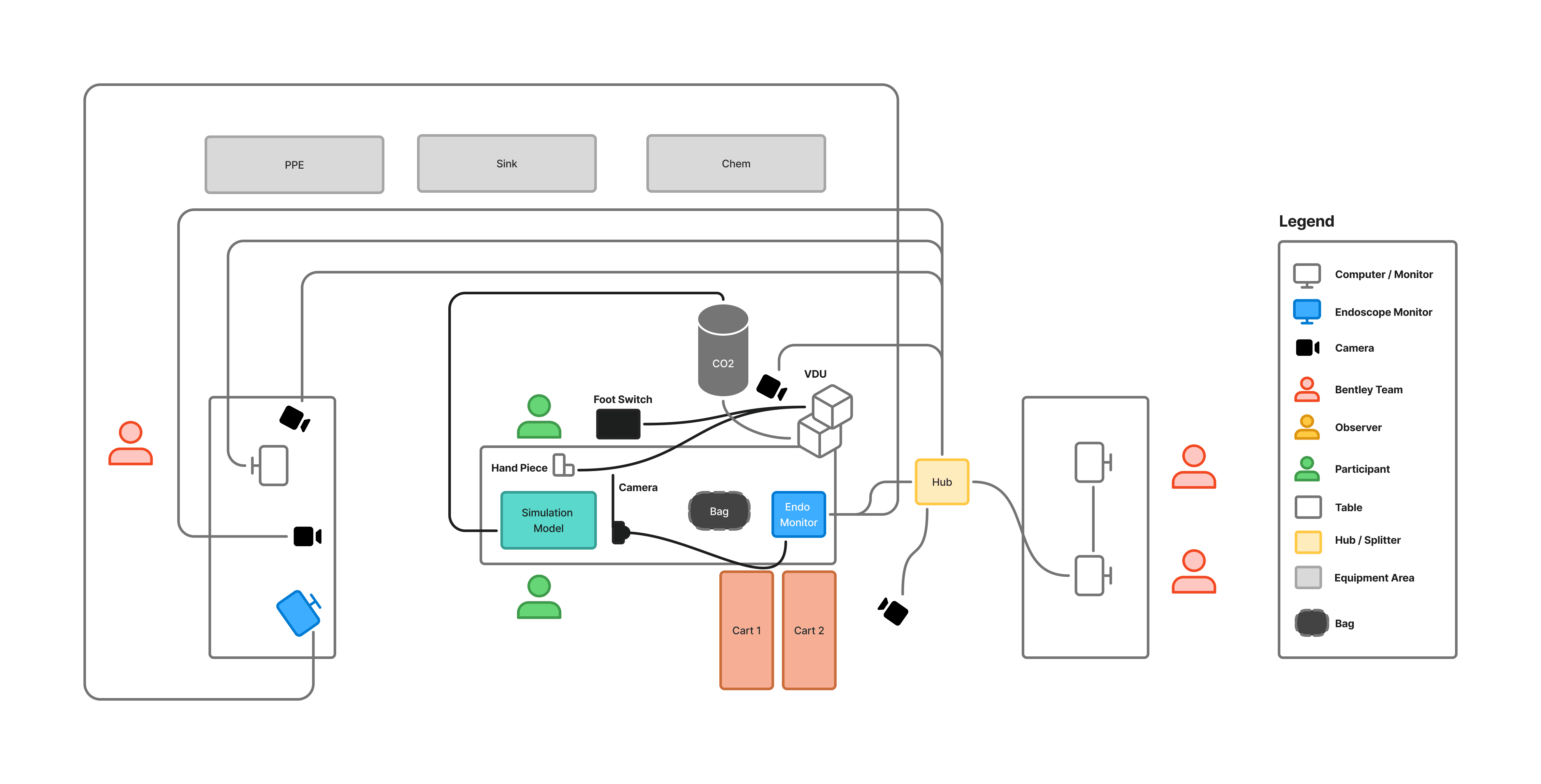 I also configured the lab to simulate surgical conditions. This included rigging cameras with OBS software to capture multiple angles, preparing pig heart and tissue models, and ensuring punctures could be detected reliably. Recruiting logistics were finalized by organizing surgeons across three experience tiers and allowing scrub techs to participate in multiple sessions without training decay.